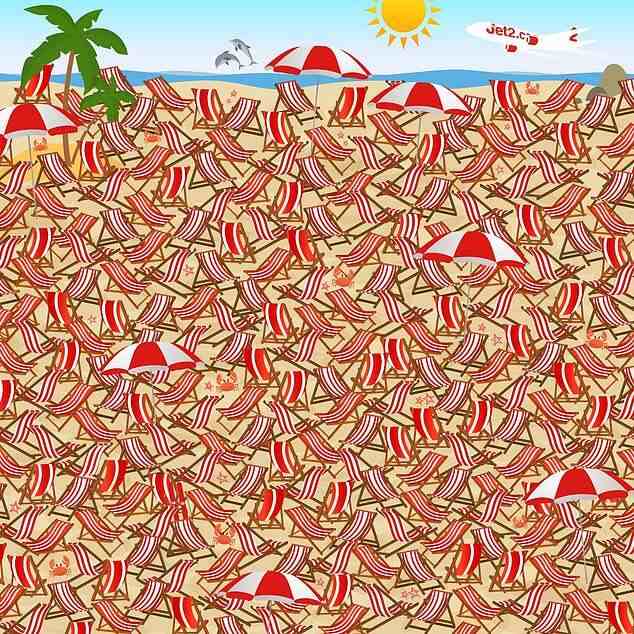 The image was posted by Jet 2 Holidays and it is an image filled with beach chairs that hides the skis very cleverly.