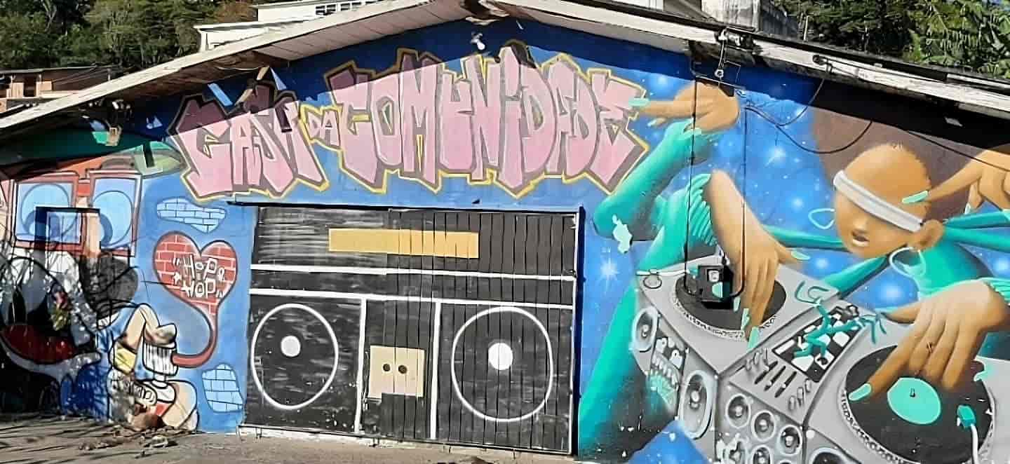 The image shared above depicts an outdoor scene with graffiti drawn on walls.