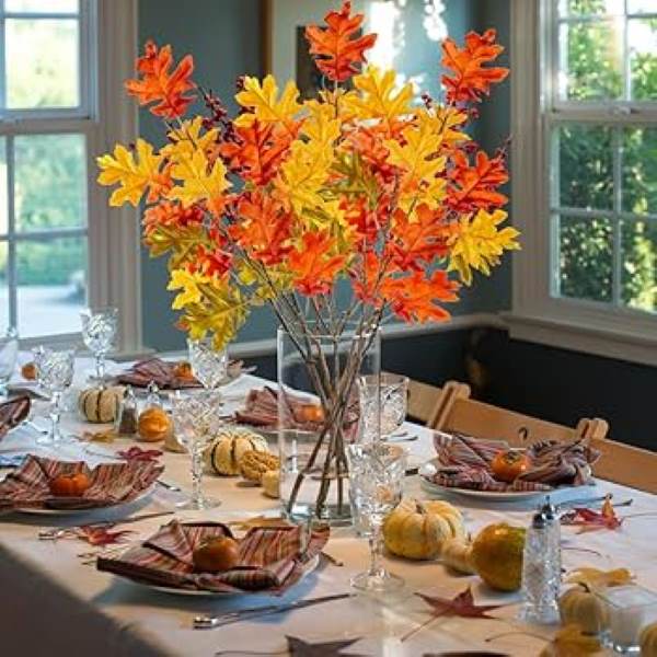 Bring the vibrant hues of autumn into your home with fall foliage. Gather fallen leaves in a variety of colours, such as red, orange, and yellow. Arrange them in decorative bowls, scatter them across a table runner, or press them onto paper to create unique place cards.