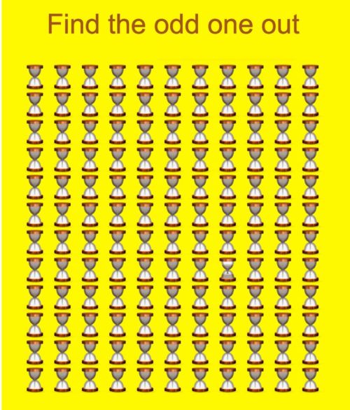 In the above image, you need to identify that one odd sand clock that is different from the others in the picture. An alert mind can find the odd sand clock within 5 seconds. Here’s a hint for you! Look at all the sand cloks carefully.