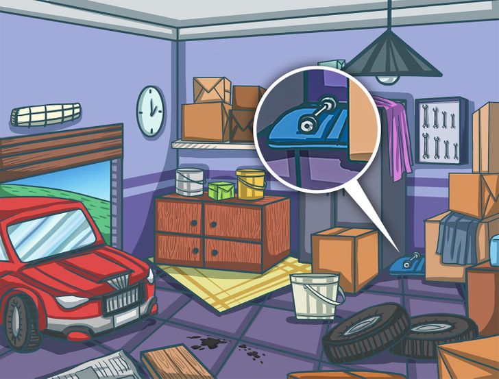 In the image below, you will see a cluttered store room scene. However, if you look closely, you will find that there is a skateboard hidden in this image and your challenge is to spot that skateboard as quickly as possible.