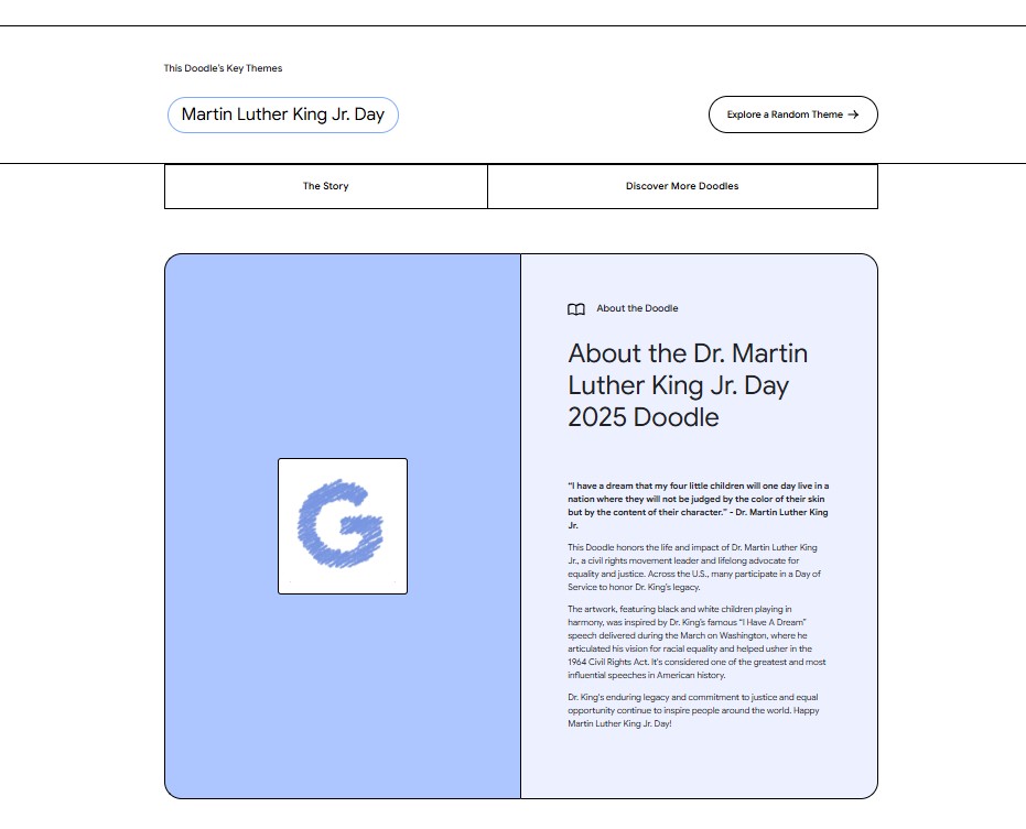 The Doodle artwork was beautifully crafted by the talented Brooklyn-based artist Richard A. Chance, highlighting King's remarkable legacy and meaningful impact on American society.