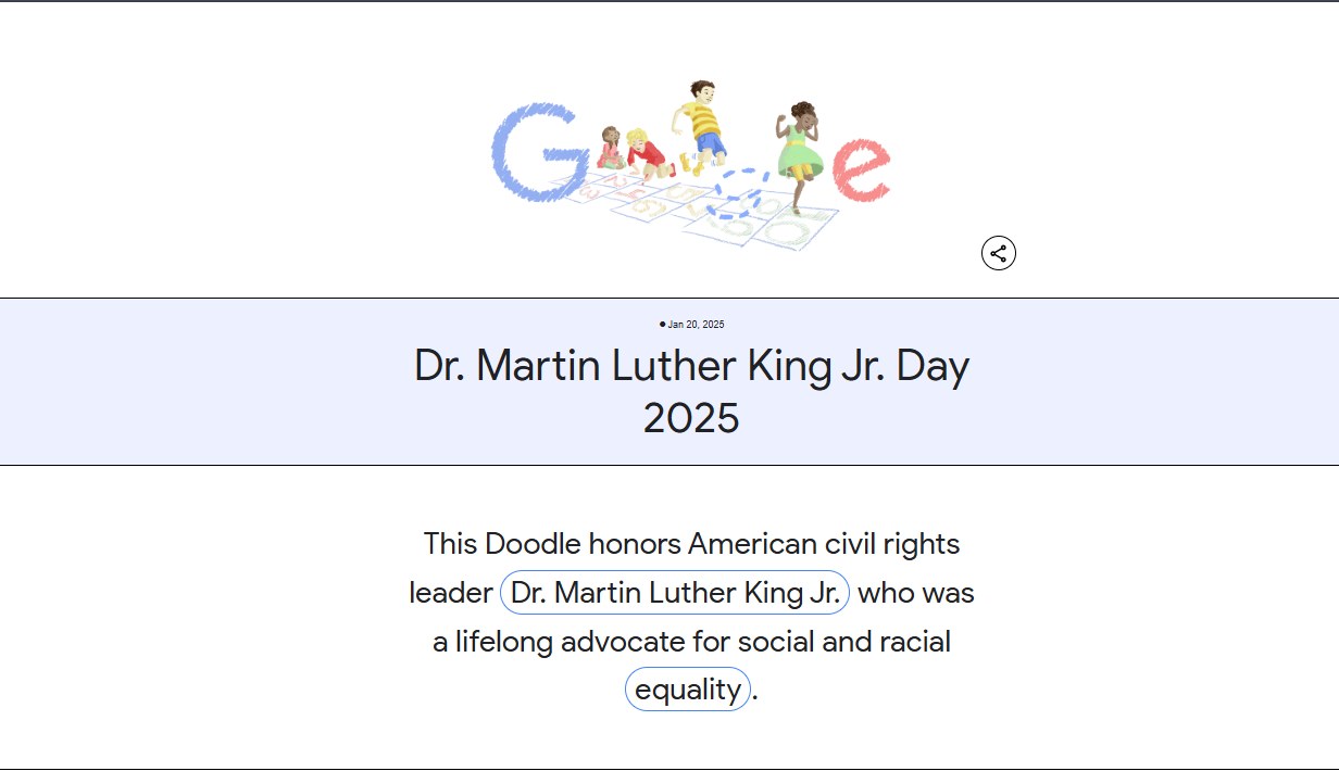 Google Doodle celebrates the 96th birthday of renowned civil rights leader Martin Luther King Jr. with a special doodle on January 20, 2025.