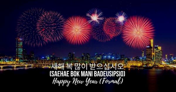 새해 복 많이 받으세요 (Saehae bok mani baduseyo) - This formal Korean greeting translates to "May you receive much good fortune in the new year." Pronunciation tip: focus on the rolled "r" in "saehae."