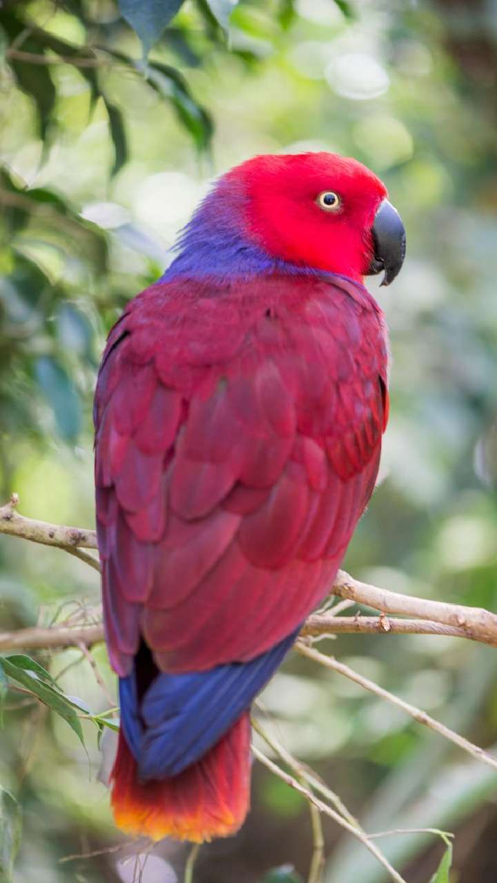 इक्लेक्टस तोते 17-20 इंच के मध्यम आकार के पक्षी होते हैं जिनका वजन 13-19 औंस होता है।