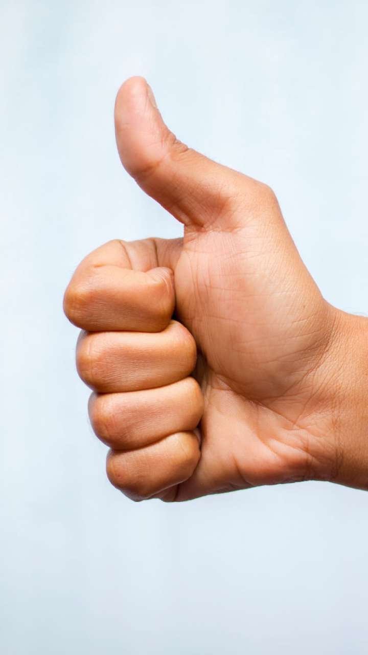 अंगुलियों को आपस में फंसाकर अचानक अंगूठे को ऊपर उठाना, कही जा रही बात में आत्मविश्वास को दर्शाता है।