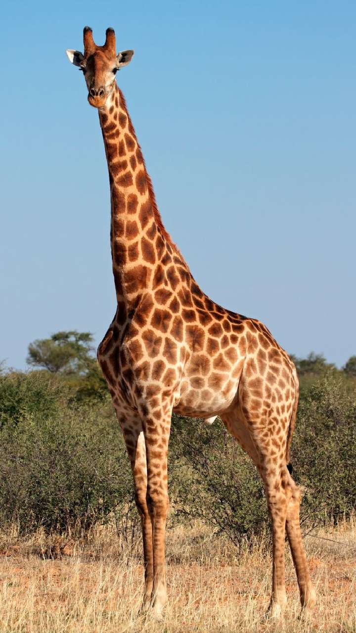 जिराफ जमीन पर पाए जाने वाले सबसे लंबे जानवरों में से एक है। वे 18 फीट लंब हो सकते हैं और उनकी गर्दन इतनी लंबी होती है कि वे ऊंचे पेड़ों तक पहुंच सकते हैं।