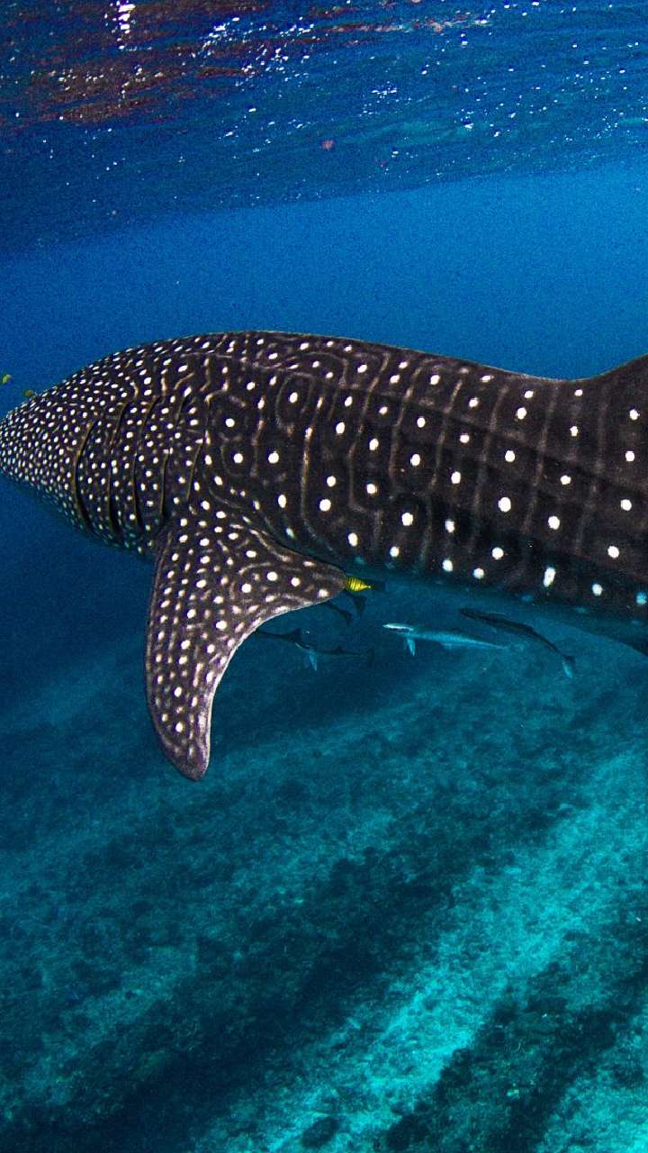 व्हेल शार्क सबसे बड़ी मछली है। वे 60 फीट तक लंबी हो सकती हैं और उनका वजन लगभग 15 टन होता है।