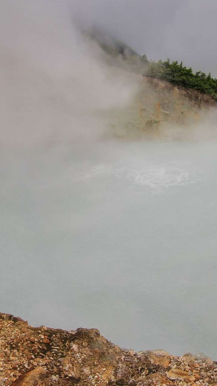 उबलती झील का पानी किनारों पर 180 से 197°F तक गर्म हो सकता है। ज्वालामुखी के पास स्थित, झील नीचे पिघले लावा से निकलने वाली भाप और गैसों से गर्म होती है।
