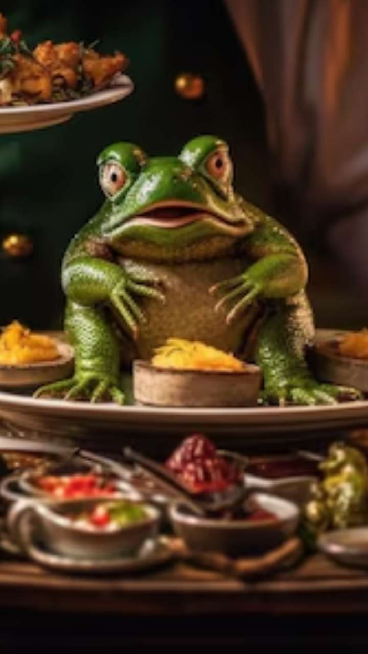 मेंढक सैशिमी डीश, जो जापान में उत्पन्न हुआ था। मेढक भी लोगों को जिंदा ही परोसे जाते हैं।