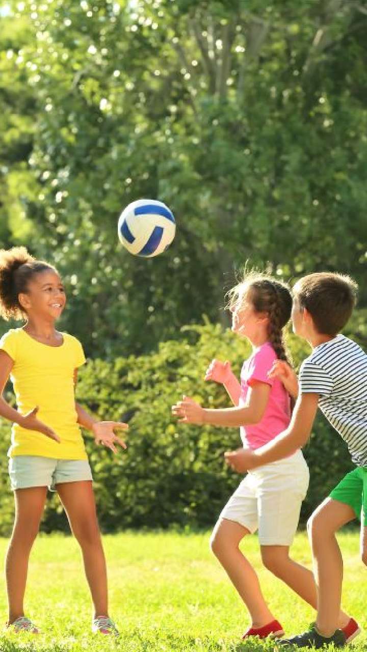 Kids might have trouble handling a genuine volleyball. The rest game will be the same, just swap out the ball with some balloons.