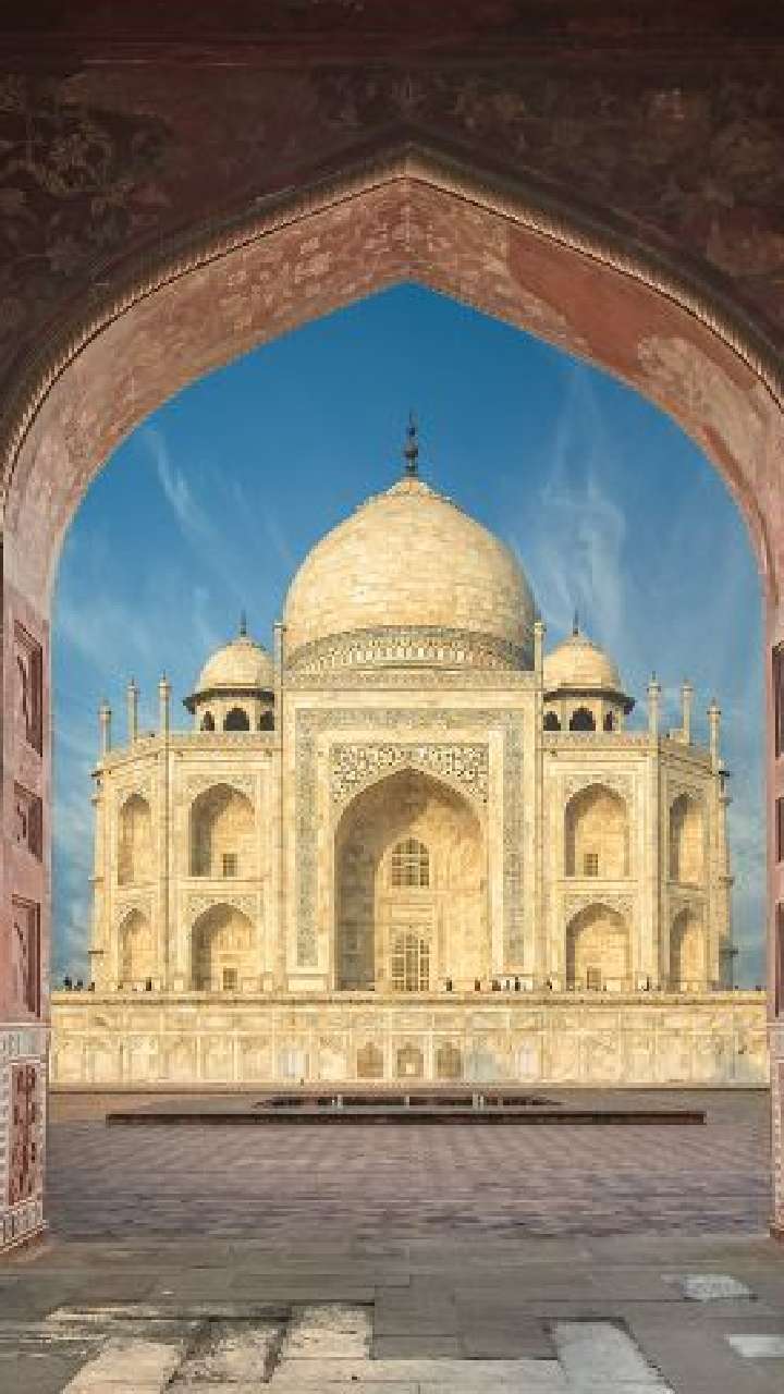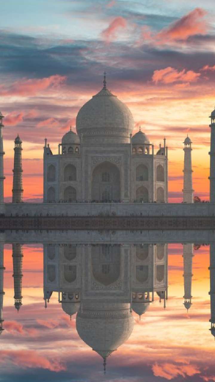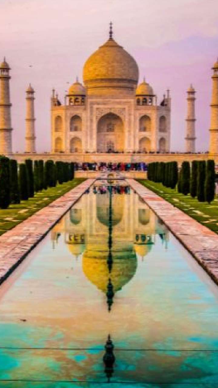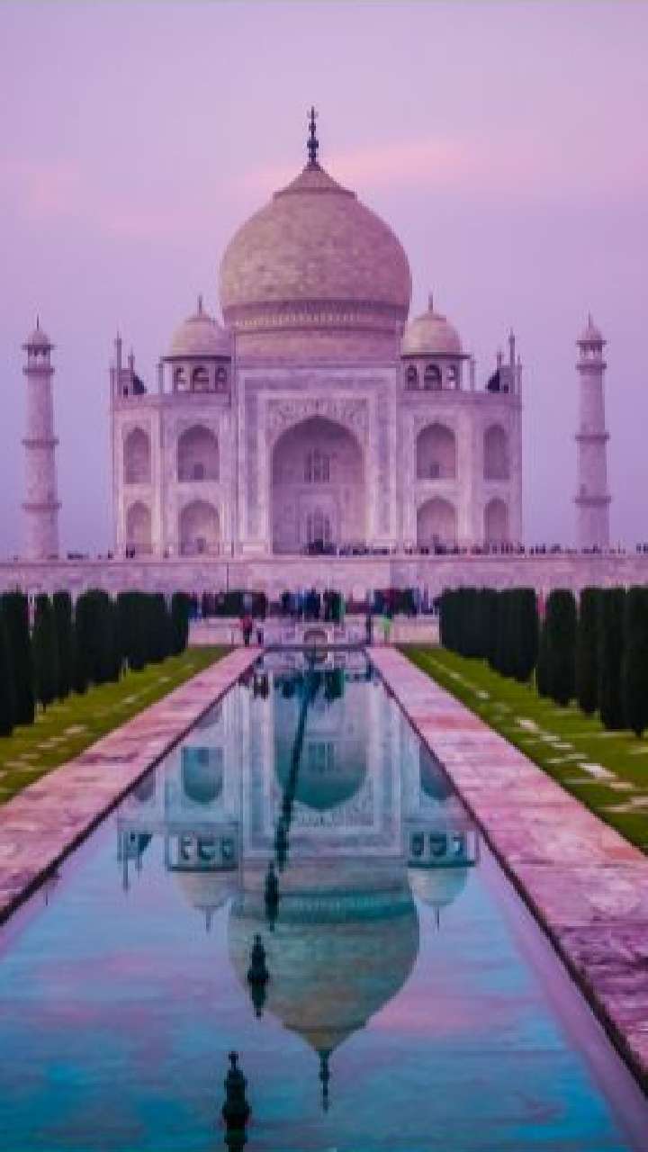 The colour of Taj Mahal keeps changing throughout the day as the sun ascends and descends.