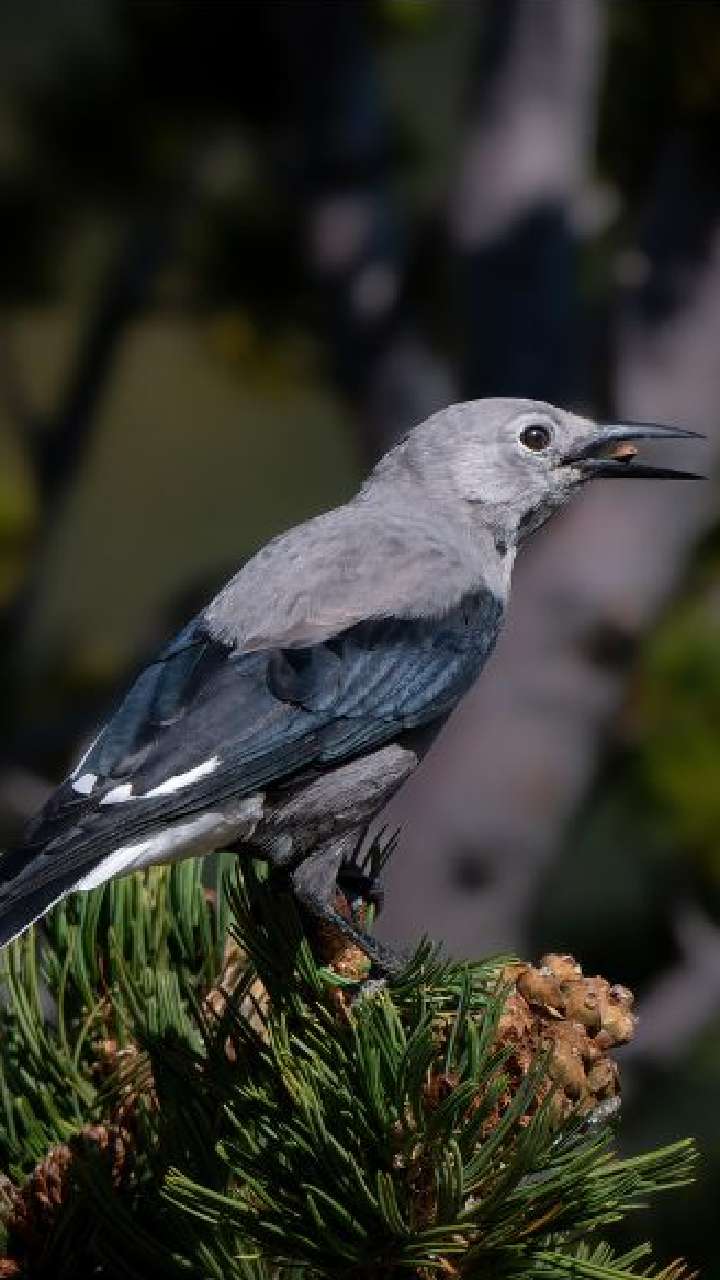 The Clark’s Nutcracker lives in the western part of the United States. They are popular for their gray feathers and have great memories.