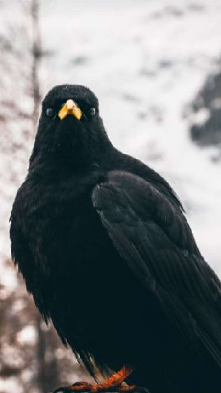 Ravens have solid black feathers and black eyes. These birds are considered as one of the smartest birds around the world.