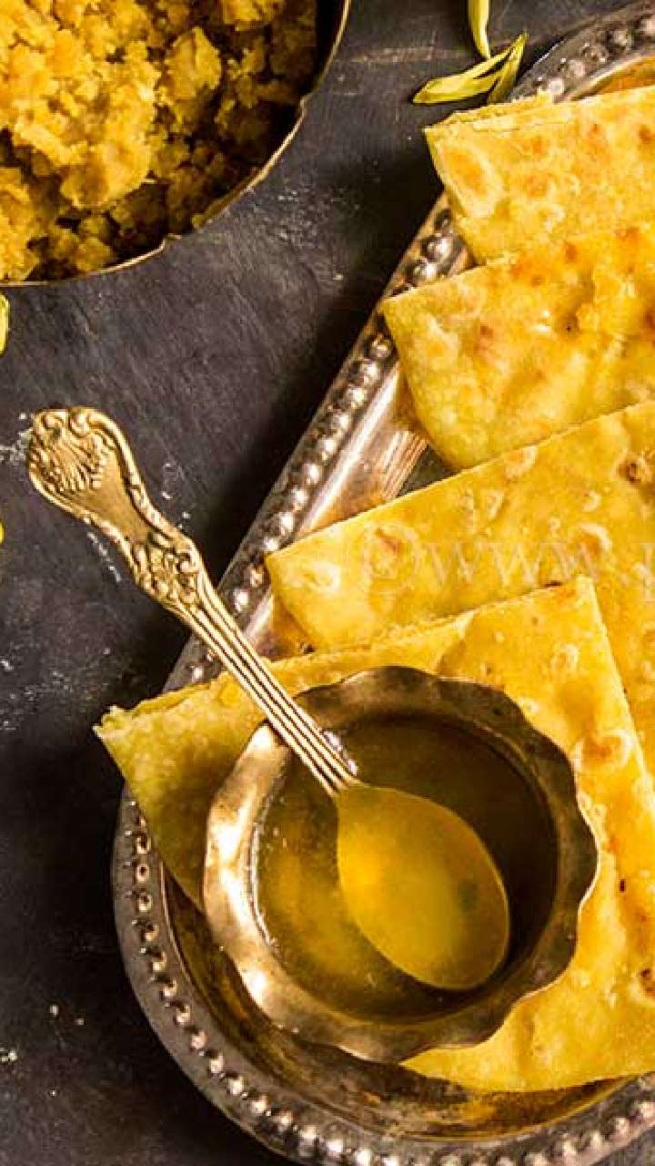 A traditional sweet flatbread made with a filling of chana dal and jaggery. It is typically served during festivals and special occasions in Maharashtra.