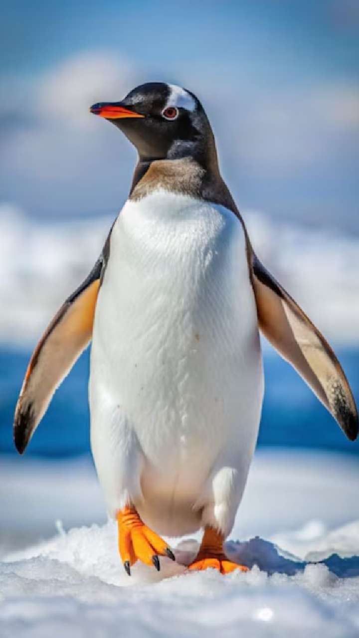 Known for their bright orange beaks and the white stripe across their heads, Gentoo penguins are the fastest swimming penguins, reaching speeds of up to 36 km/h.