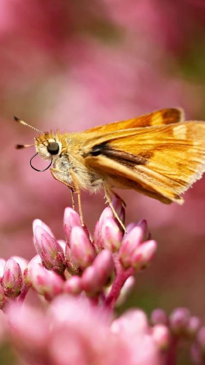 This butterfly is a small brown butterfly and has a wingspan of 3 to 4 cm with a black spots on its body and wings.