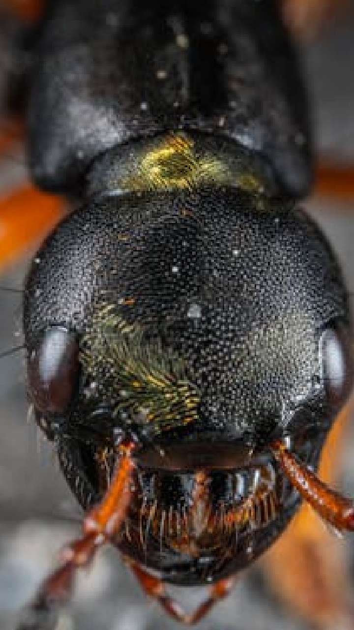 The six legs of an ant are connected to its thorax, the middle section of its body.