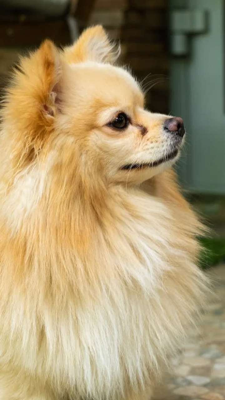 Pomeranians have a thick double coat, which makes them fluffy and requires regular grooming to avoid matting and keep their fur healthy and clean.