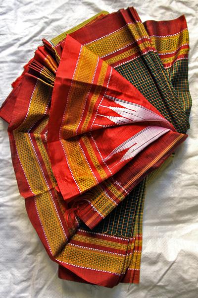 इक्कल साड़ी&ये साड़ी कर्नाटक राज्य से सम्बन्धित है इसमें बीच में कॉटन के धागे से डिजाइन बनाई जाती है जबकि इसके बॉर्डर और पल्लू पर आर्ट सिल्क से डिजाइन बनाई जाती है .