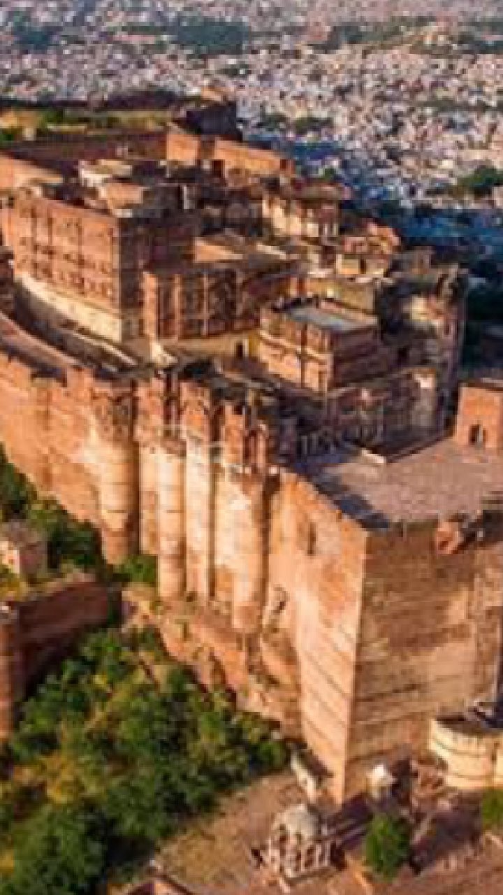 Mehrangarh Fort in Jodhpur offers panoramic views of the blue city and showcases exquisite Rajput architecture and rich cultural history.
