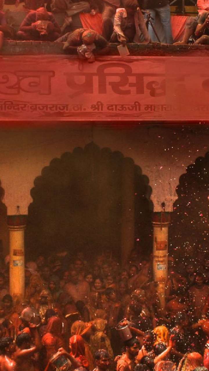 The playfulness of men from Nandgaon that involves throwing colours at women is what makes Lathmar Holi an interesting event in Barsana.