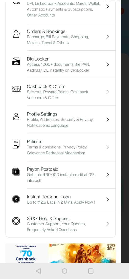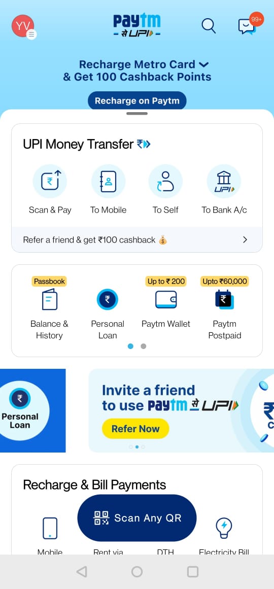 Open the Paytm app&and tap on your profile by clicking on the top left corner