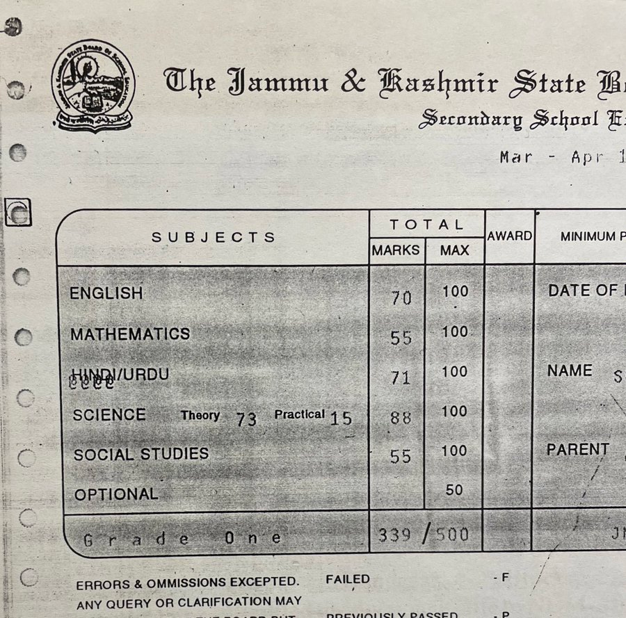 मार्कशीट से हिसाब से उन्हें अंग्रेजी में 70,हिन्दी में 71, सोशल स्टडीज में 55, गणित में 55 और विज्ञान में 100 में से 88 अंक मिले हैं।