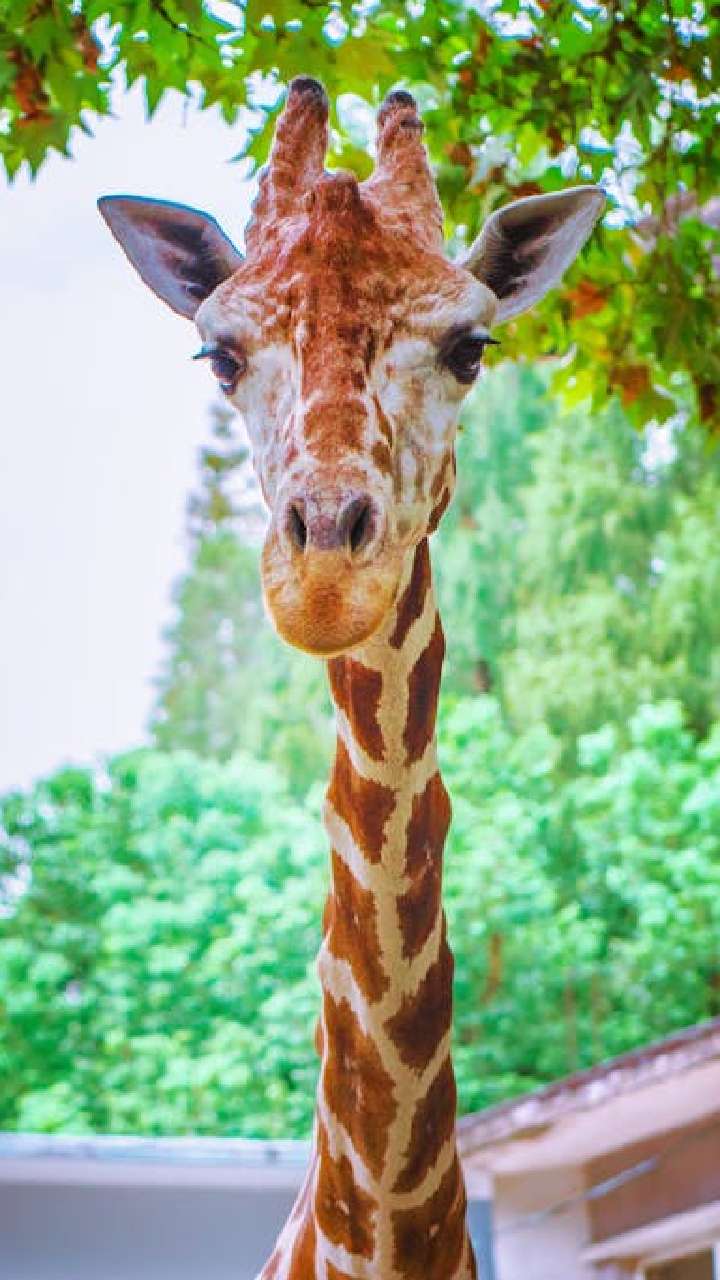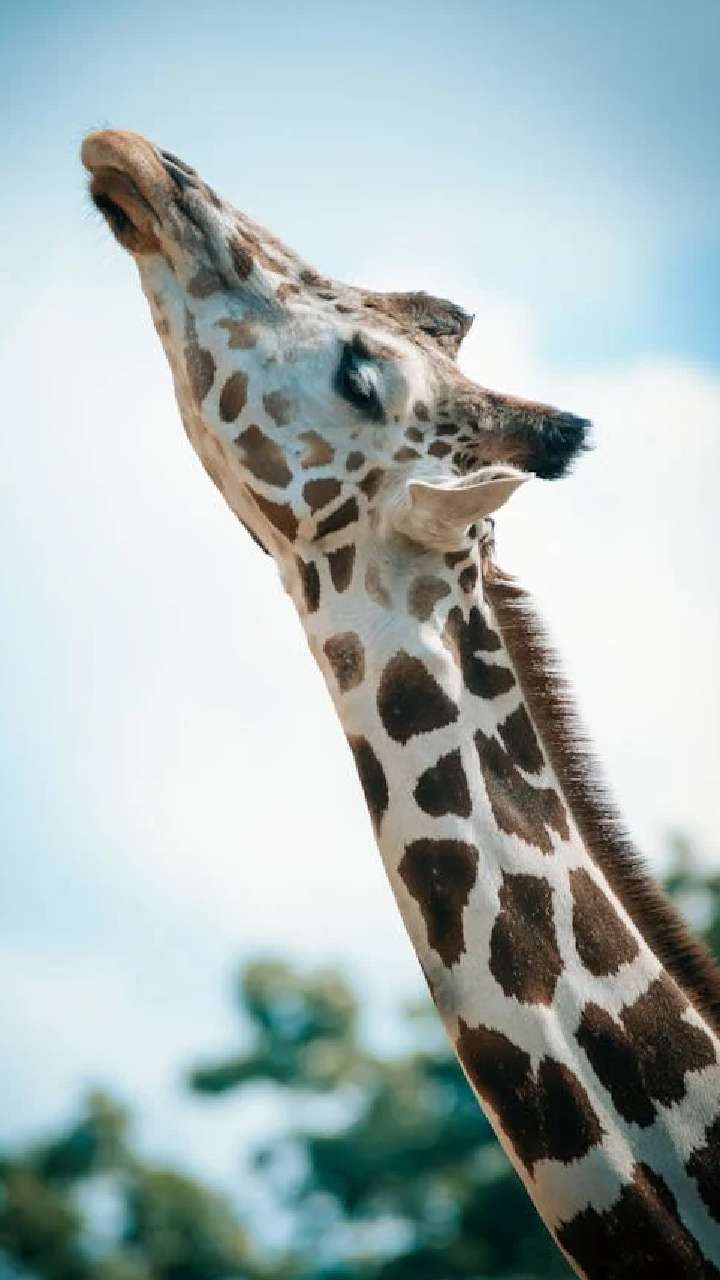 The tallest mammal with a long neck. They use their height to reach tree leaves. Their tongue is long enough to grab leaves easily.