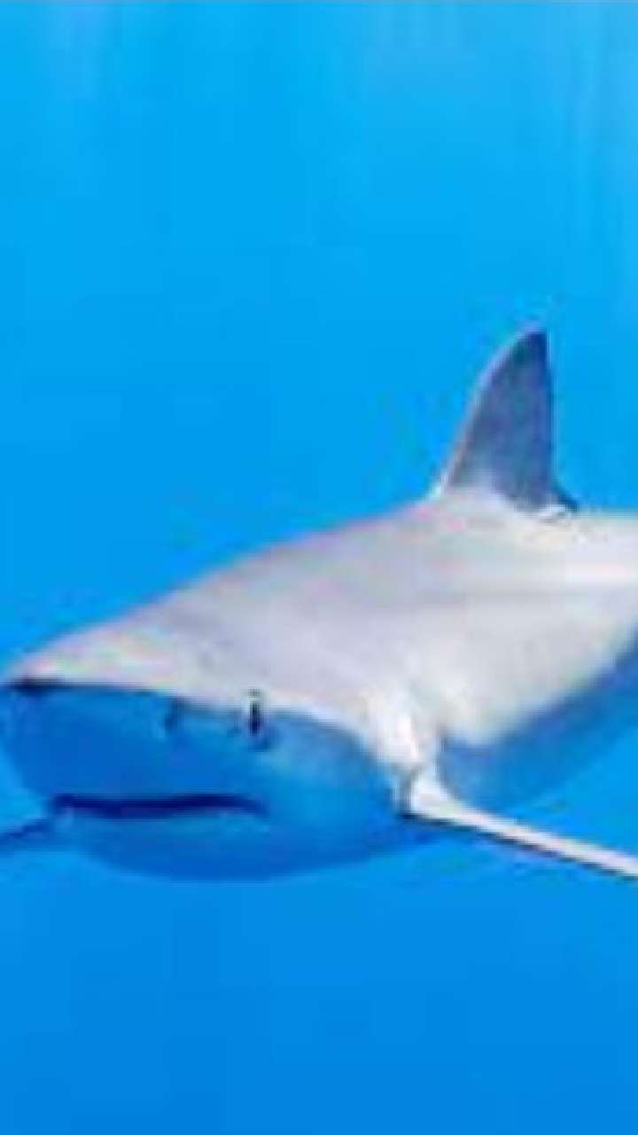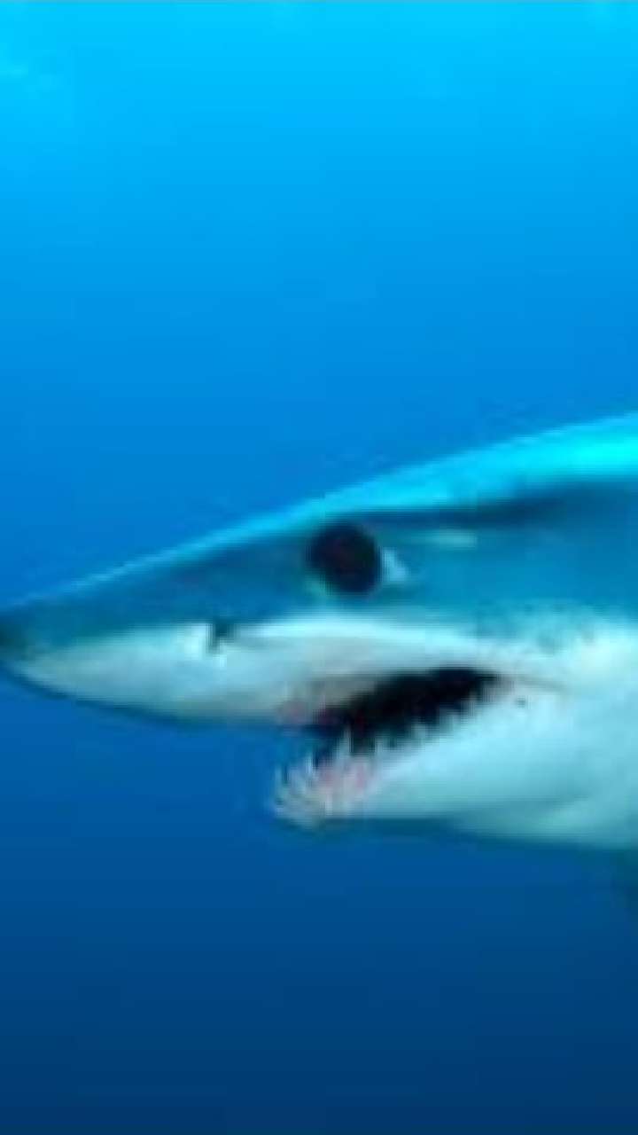The shortfin mako stands out as one of the most dangerous sharks, thanks to its prominently pointed snout and dark eyes.