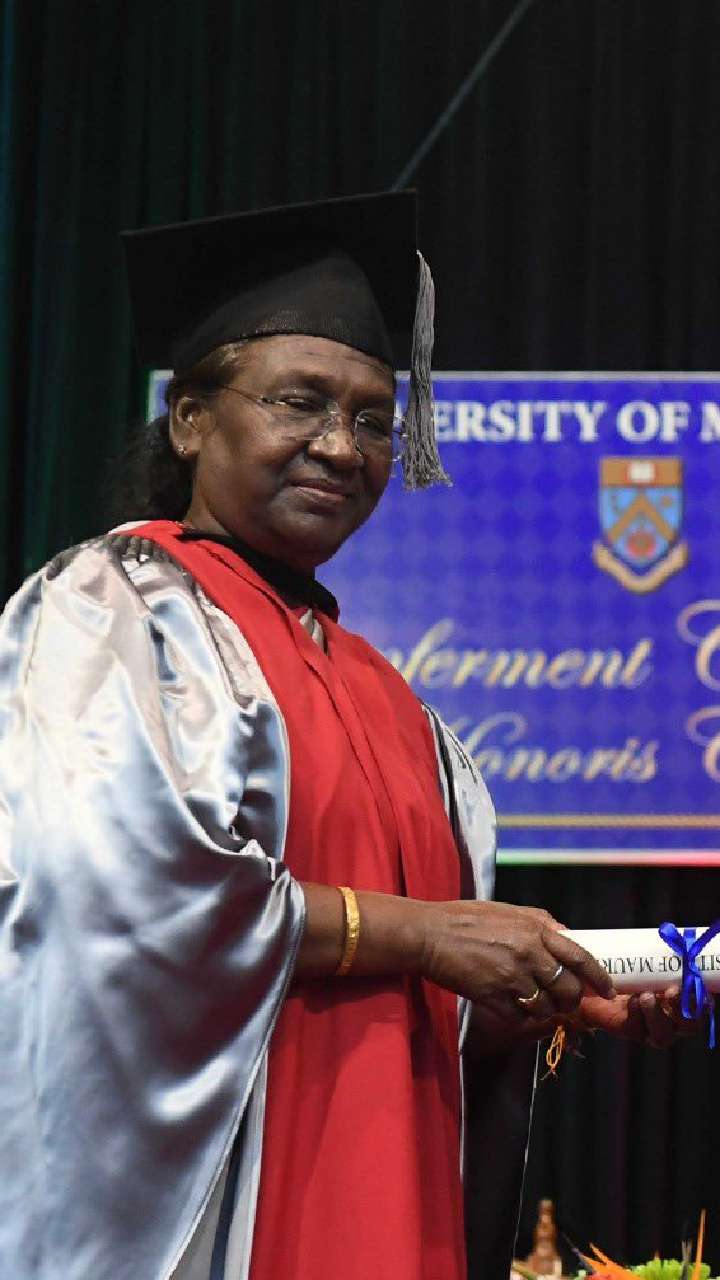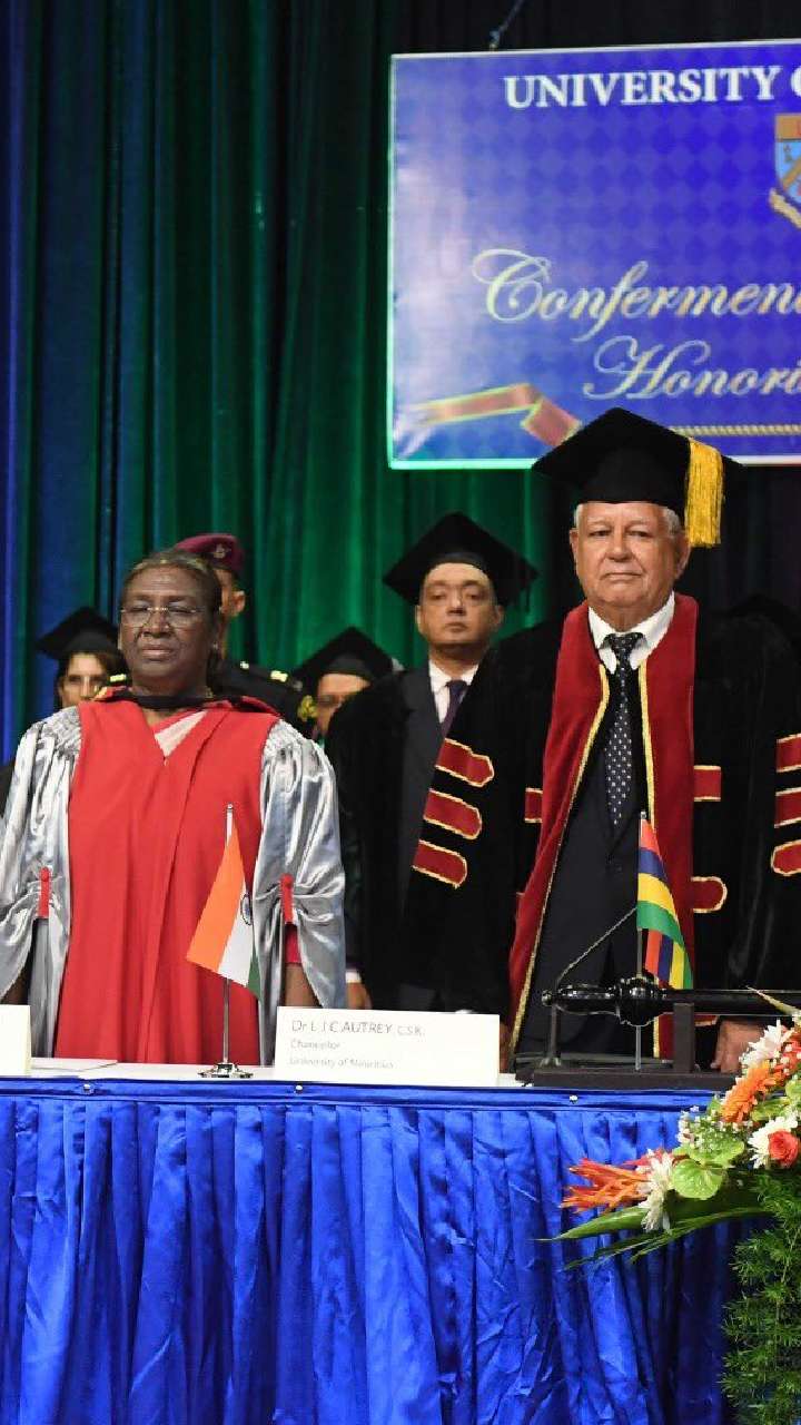 भारत की राष्ट्रपति द्रौपदी मुर्मू को 12 मार्च, 2024 को मॉरिशस यूनिवर्सिटी की ओर से डॉक्टर ऑफ सिविल लॉ की उपाधि से सम्मानित किया गया है। यह उपाधि उन्हें अपने तीन दिन के दौरे के दौरान दी गई है।