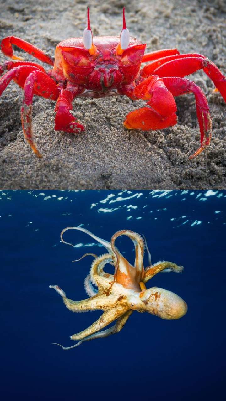 समुद्री केकड़े और ऑक्टोपस।