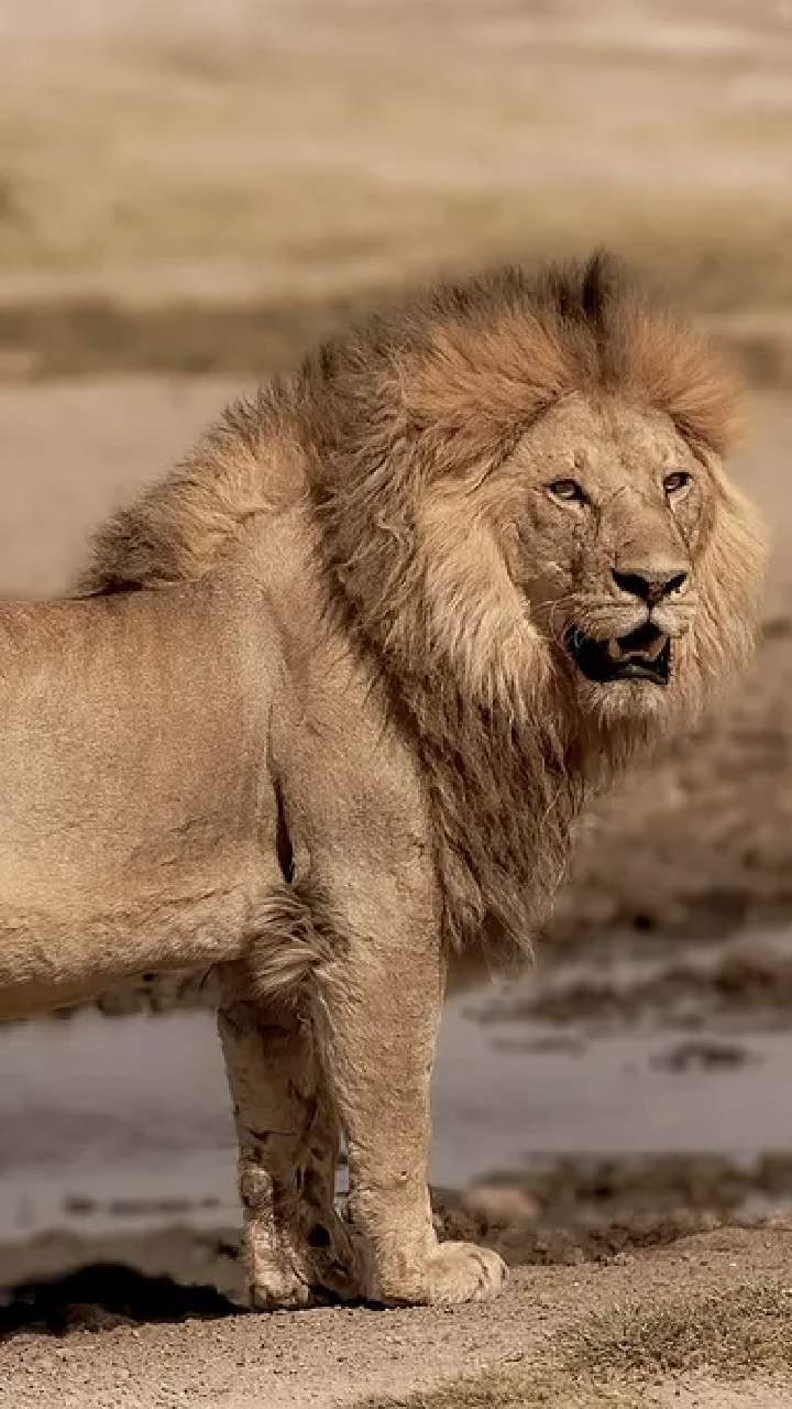 मसाई शेर पूर्वी अफ्रीका का मूल निवासी है, जो अपने विशिष्ट अयाल और थोड़े अलग शारीरिक संरचना के लिए जाना जाता है।
