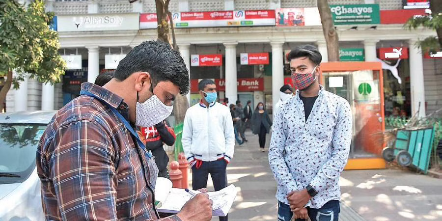 राष्ट्रीय राजधानी दिल्ली में फेस मास्क न लगाने पर 500 रुपय का जुर्माना।