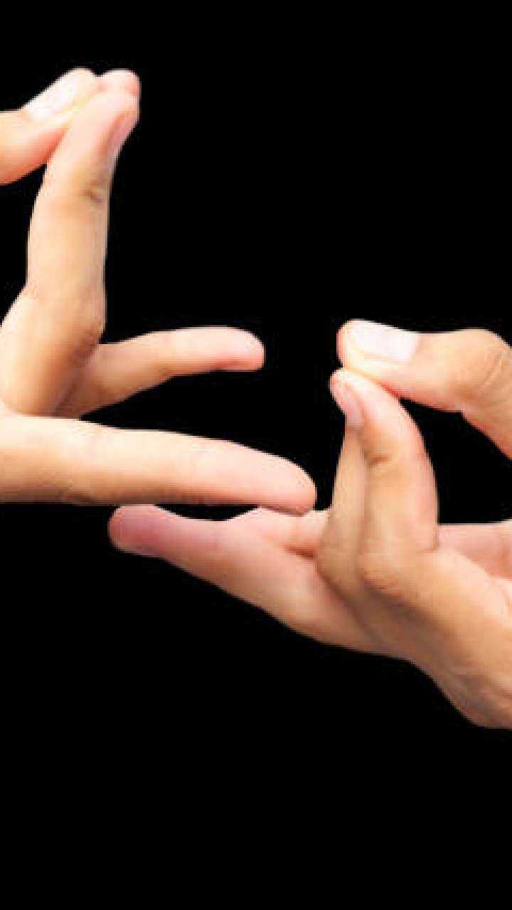 फिर अपनी मिडिल फिंगर और इंडेक्स फिंगर को अंगूठे से दबाएं और रिंग फिंगर और छोटी उगंली को फैलाकर रखें।
