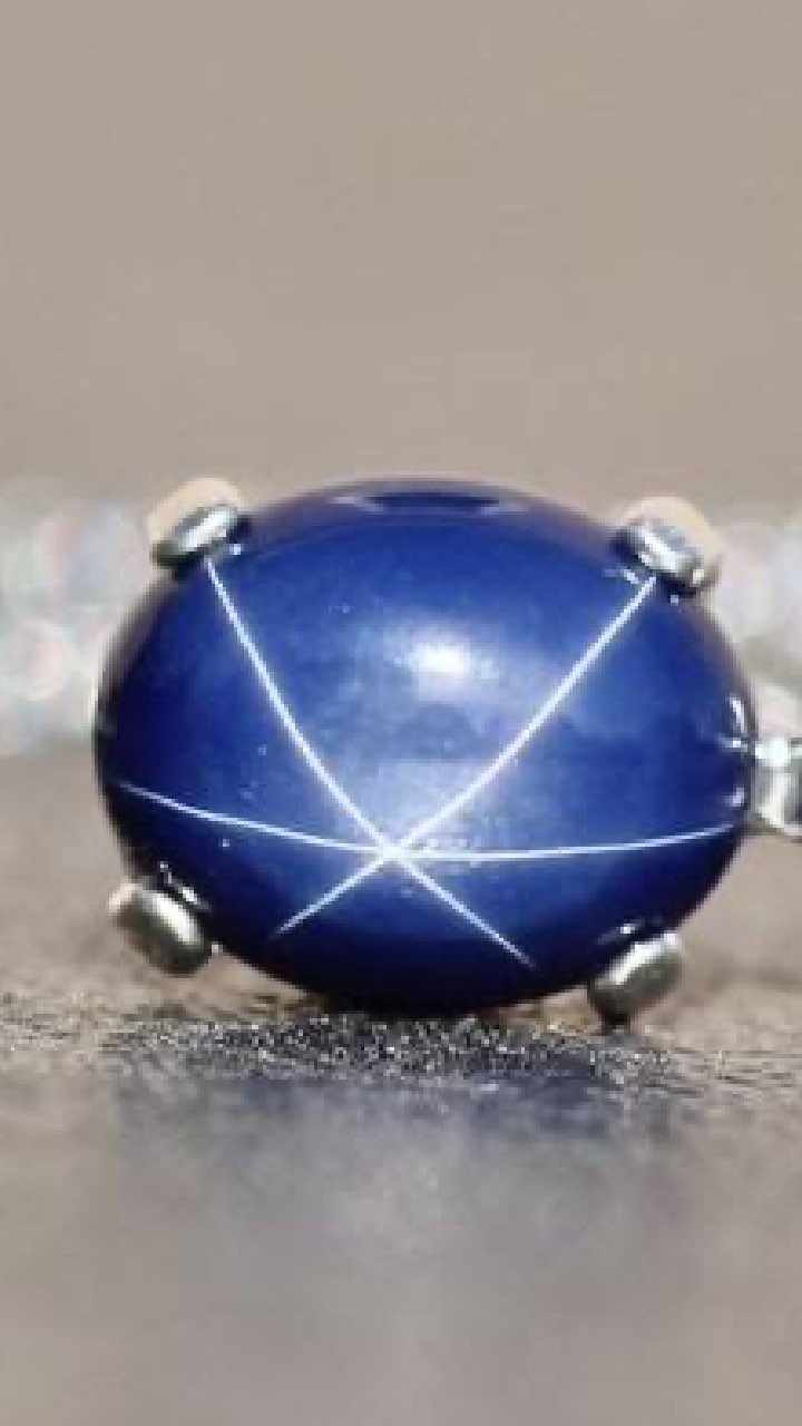 This gemstone has a star-like shine on its surface. The star effect happens because of tiny lines inside the stone.