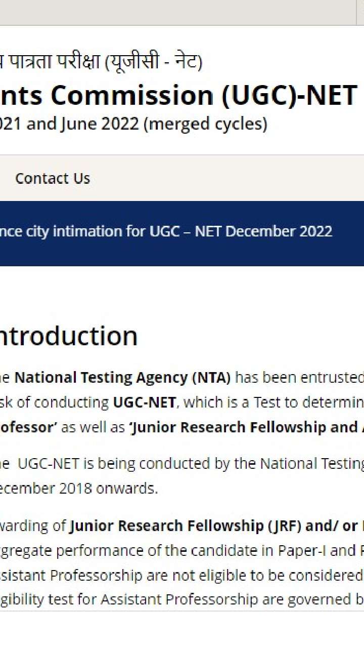 UGC Net Exam 2022: Phase 3 City Intimation slip download process