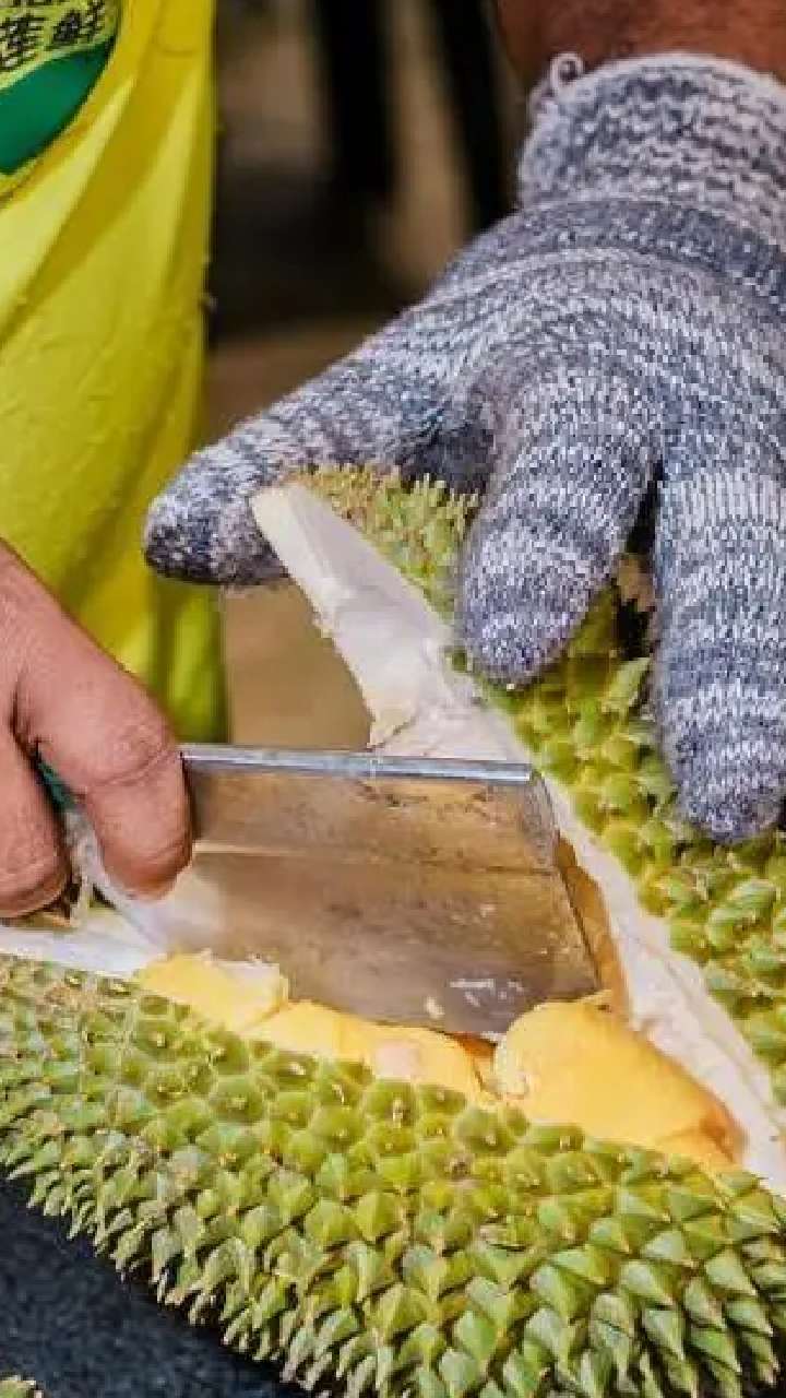 Durian has a strong smell but creamy, soft flesh. It tastes both sweet and savory, and is loved for its rich, unique flavour.