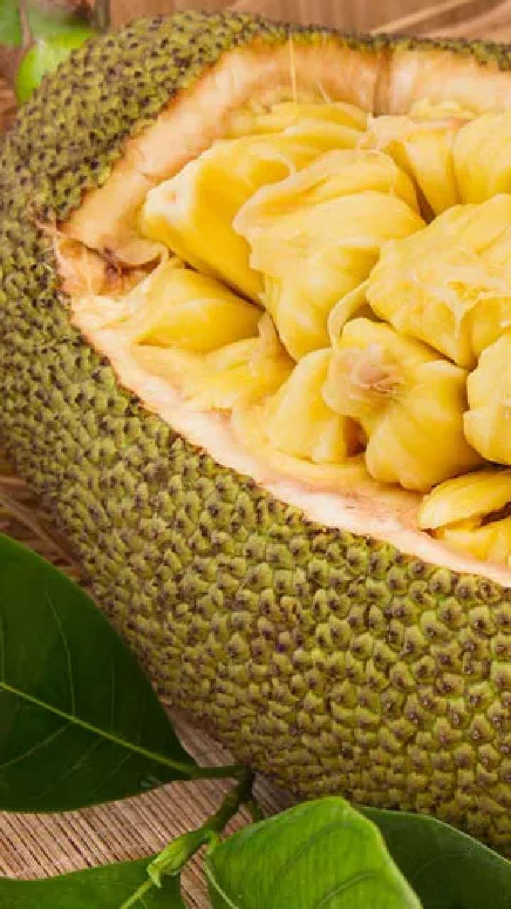 Jackfruit is a huge fruit with thick skin and soft, stringy flesh. When ripe, it’s sweet like tropical fruits, but unripe, it’s used in savory dishes.