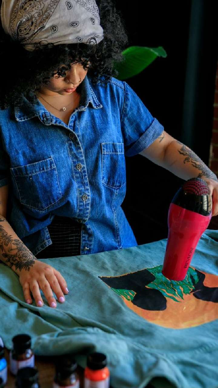 In this a person paints the cardboard sheets to see how long new paint mixes take to dry and to see if the color and texture changes.
