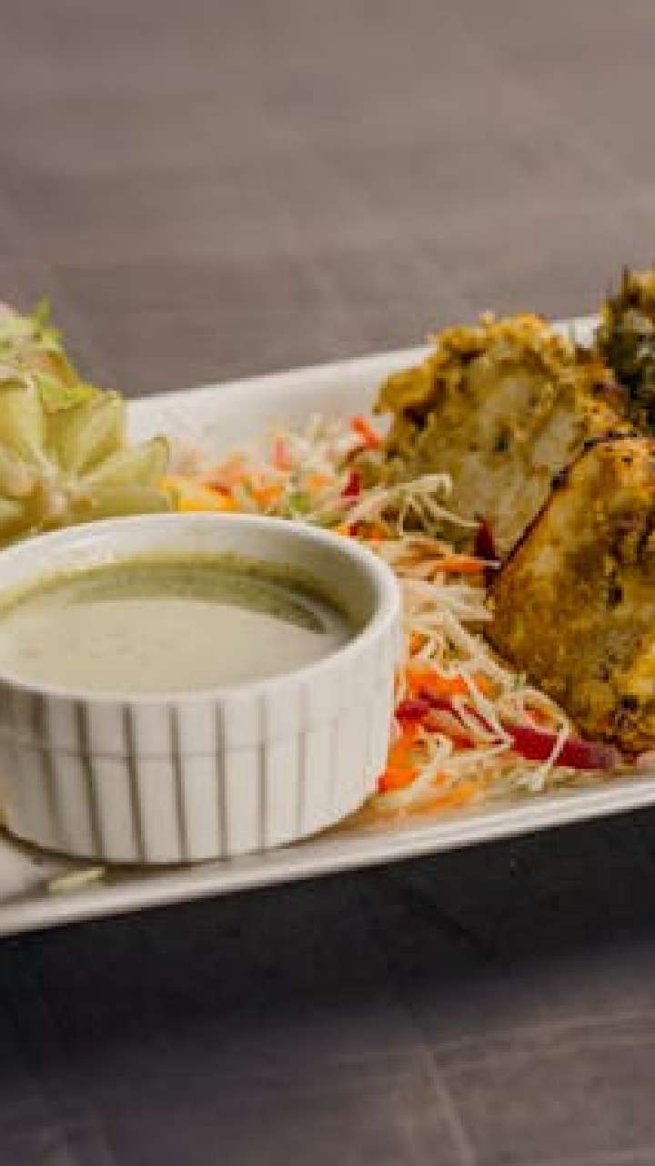 Paneer Tikka is served with mint chutney, lemon wedges and salad. These sides enhance the flavour of the dish.