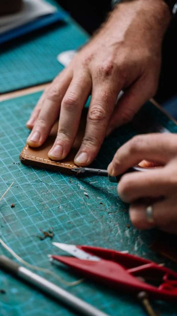 Skilled workers in Kanpur make custom leather items. They create high-quality bags, wallets, and other leather products by hand.