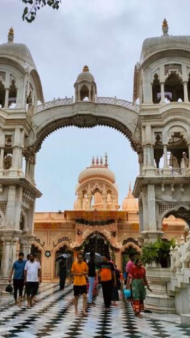 ISKCON temples are white because white means purity and peace. It makes the temple look calm and beautiful. Tap to read in detail.