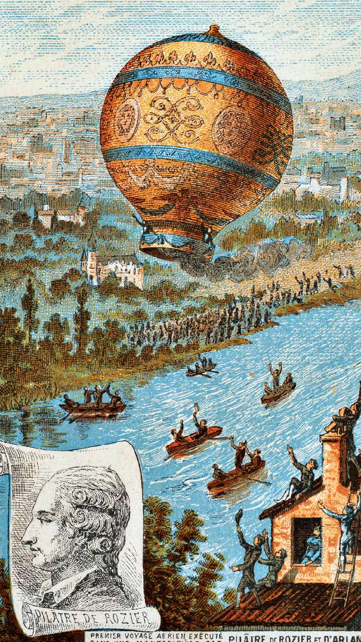 एटिएन मोंटगोल्फियर और जीन-फ्रांकोइस पिलात्रे डी रोजियर हॉट एयर बैलून में उड़ान भरने वाले पहले व्यक्ति थे।