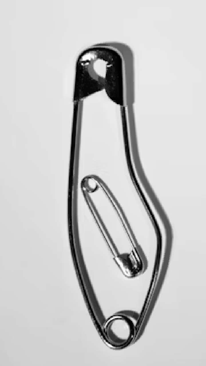 A safety pin is used to join clothes. It’s called 'safety' because its sharp end is covered, so it doesn’t hurt you. Tap to read in detail.
