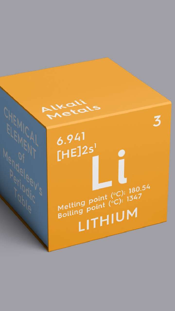 यह सबसे हल्की धातु और ठोस तत्व है, लिथियम का प्रतीक Li के रूप में दर्शाया गया है। यह एक दुर्लभ धातु हैं।
