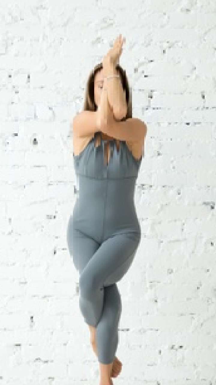 अपने पैरों को एक साथ रखते हुए, चटाई पर खड़े होकर शुरुआत करें। अपने घुटनों को थोड़ा मोड़ें, अपने बाएं पैर को ऊपर उठाएं और अपने दाहिने पैर पर संतुलन बनाते हुए, अपने बाएं पैर को उठाएं और अपनी बाईं जांघ को दाईं ओर से पार करें।