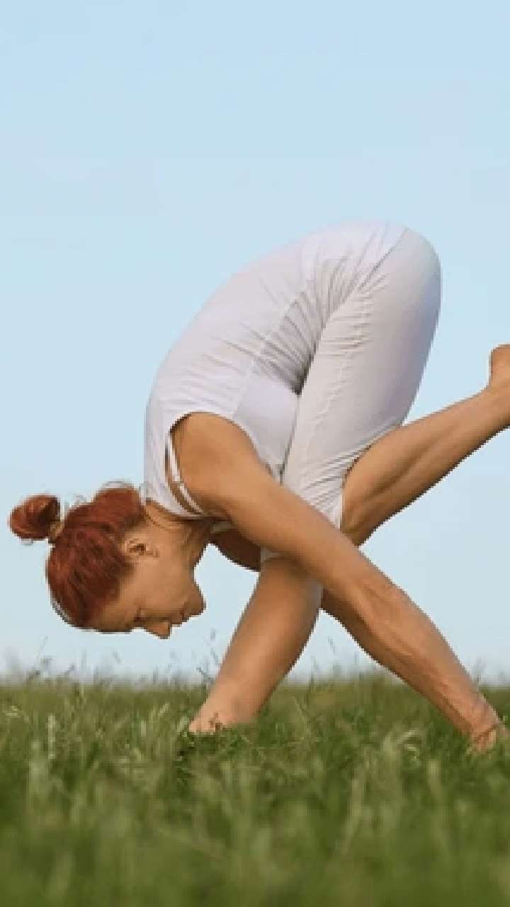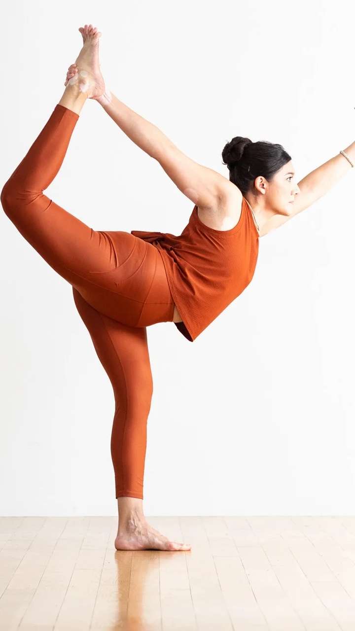 एक पैर को ऊपर की ओर मोड़ें और अपने हाथ से उस पैर को पकड़ें। अपने शरीर को सीधा रखें और अपने खाली हाथ को अपने सिर के ऊपर उठाएं। अपना संतुलन बनाए रखते हुए आगे की ओर झुकें और अपने उठाए हुए पैर को छत की ओर खींचें। अपने पैर को धीरे से छोड़ें और अपने हाथों को अपनी बगल में वापस लाएं।